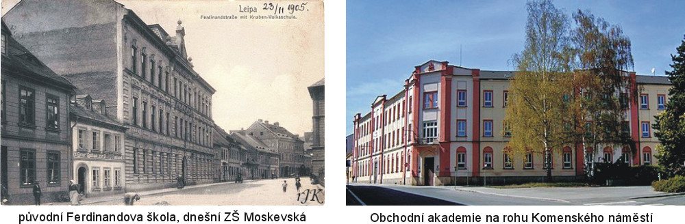 Ferdinandově škole (dnešní ZŠ v Moskevské ulici). V roce 1892 byla změněna na pokračovací školu pro obchodníky a